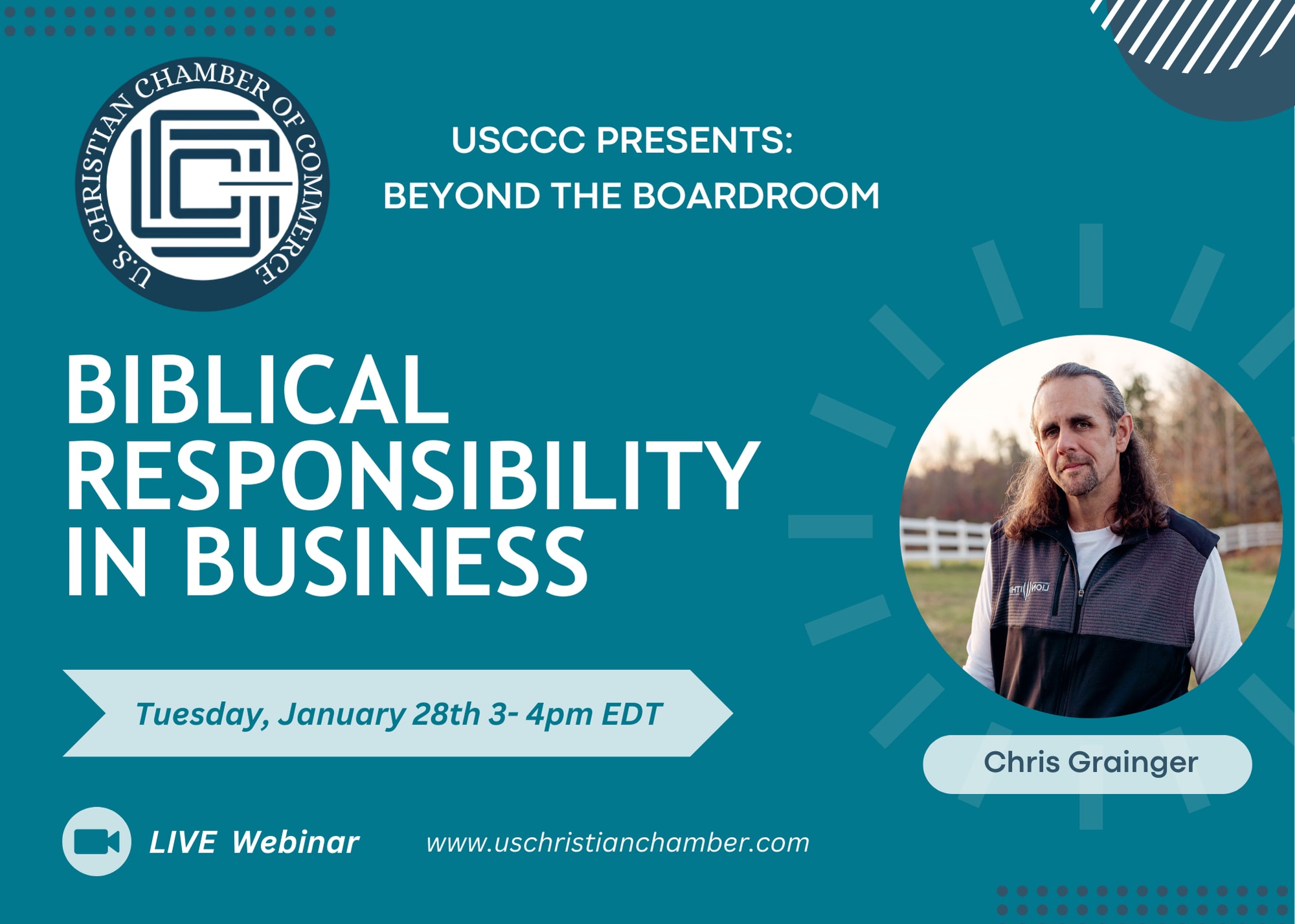 Join us on Tuesday, January 28th 3:00 - 4:00pm EDT for Beyond the Boardroom: Biblical Responsibility in Business with Chris Grainger!