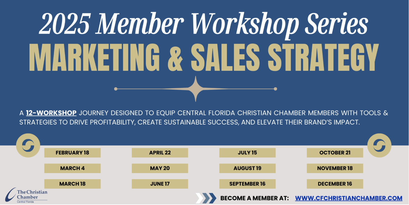 Join CFC3's Kingdom Partner, Martha Krejci, for a series of 12 workshops designed to help our members build out their marketing and sales strategies to help them drive profitability, create sustainable success, and elevate their brand's impact. These are working events, some come prepared to work ON your business!
