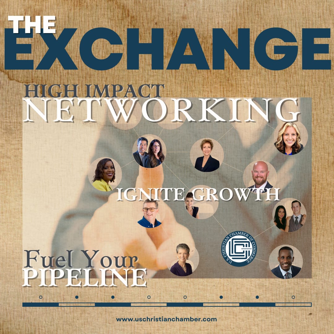 Join us for The Exchange, a monthly dynamic 1-hour virtual networking event where faith and business converge to ignite growth, build meaningful connections, and fuel your purpose-driven pipeline.