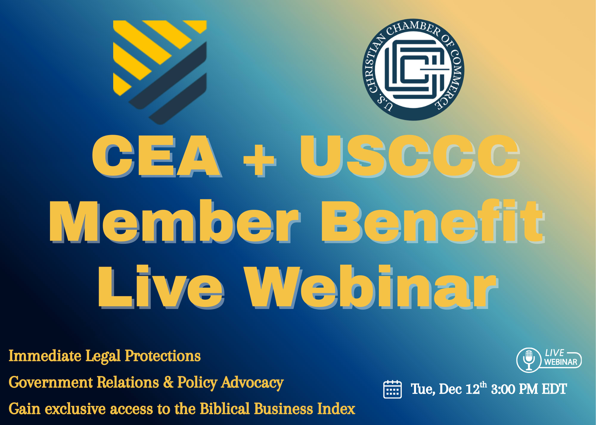 We’re excited to invite you to a special live webinar introducing one of the most powerful new benefits now included with your U.S. Christian Chamber of Commerce membership — full access to the Christian Employers Alliance (CEA).
