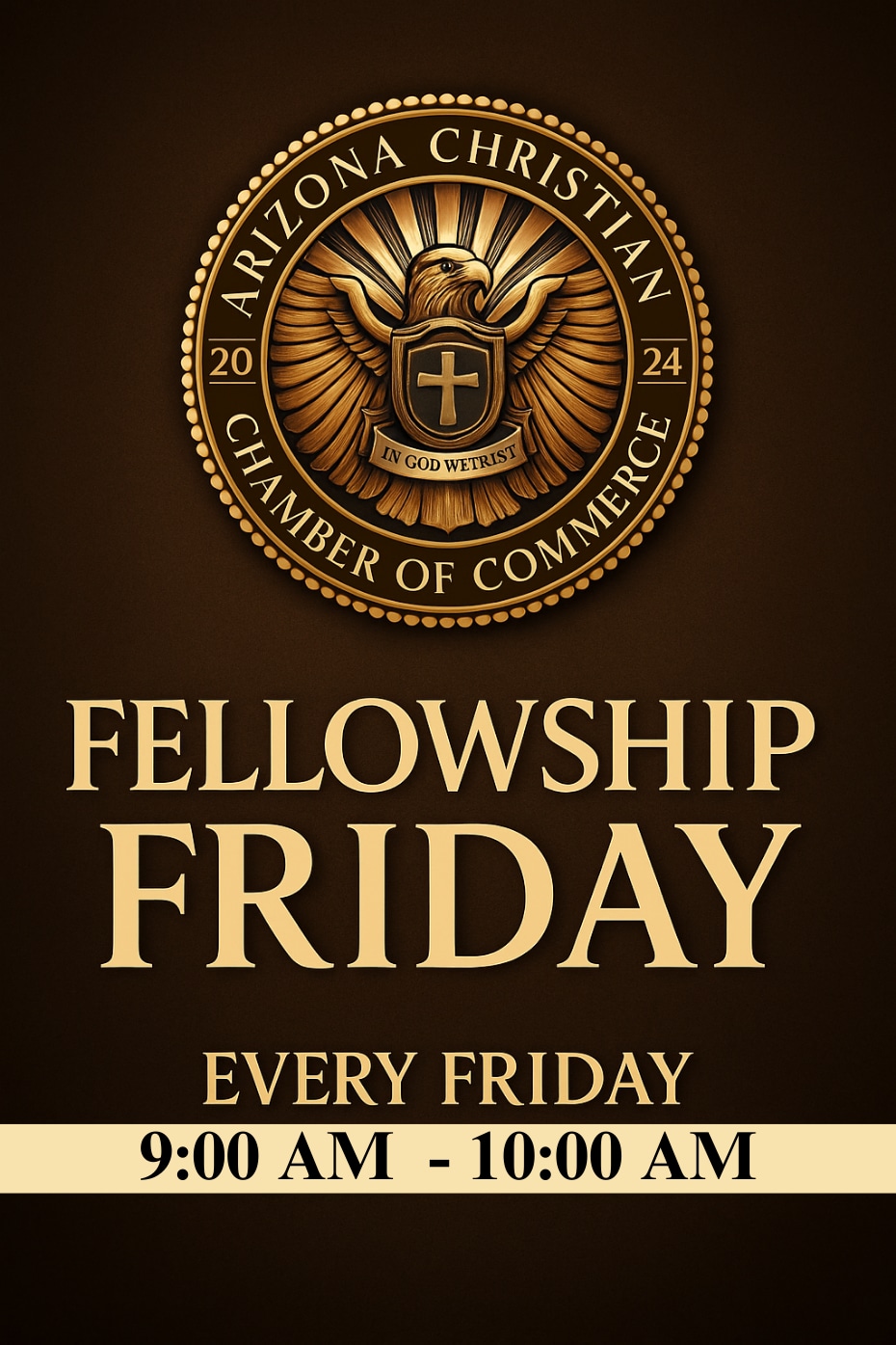 Fellowship Fridays are weekly gatherings where AZCCC members come together to grow spiritually, connect relationally, and lead boldly in the marketplace. Each week features a fresh topic, a short devotion, prayer, and open discussion designed to encourage and equip Christian business leaders.
