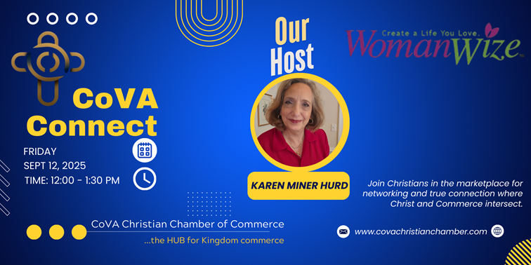 Come Meet Karen Miner Hurd of WomanWIze but its not just for Women. Karen is our membership director of the Virginia Christian Chamber and much more....(Health Expert, Marketing and Media) Learn about how to Fight Burnout and Brain Fog, that is common amongst business owners and adults alike. Karen will be giving samples of her new protein drink from Shaklee that has a mind-blowing amount of protein grams. Karen will also teach you how to get to the amount of protein needed to maintain energy and a healthy weight.