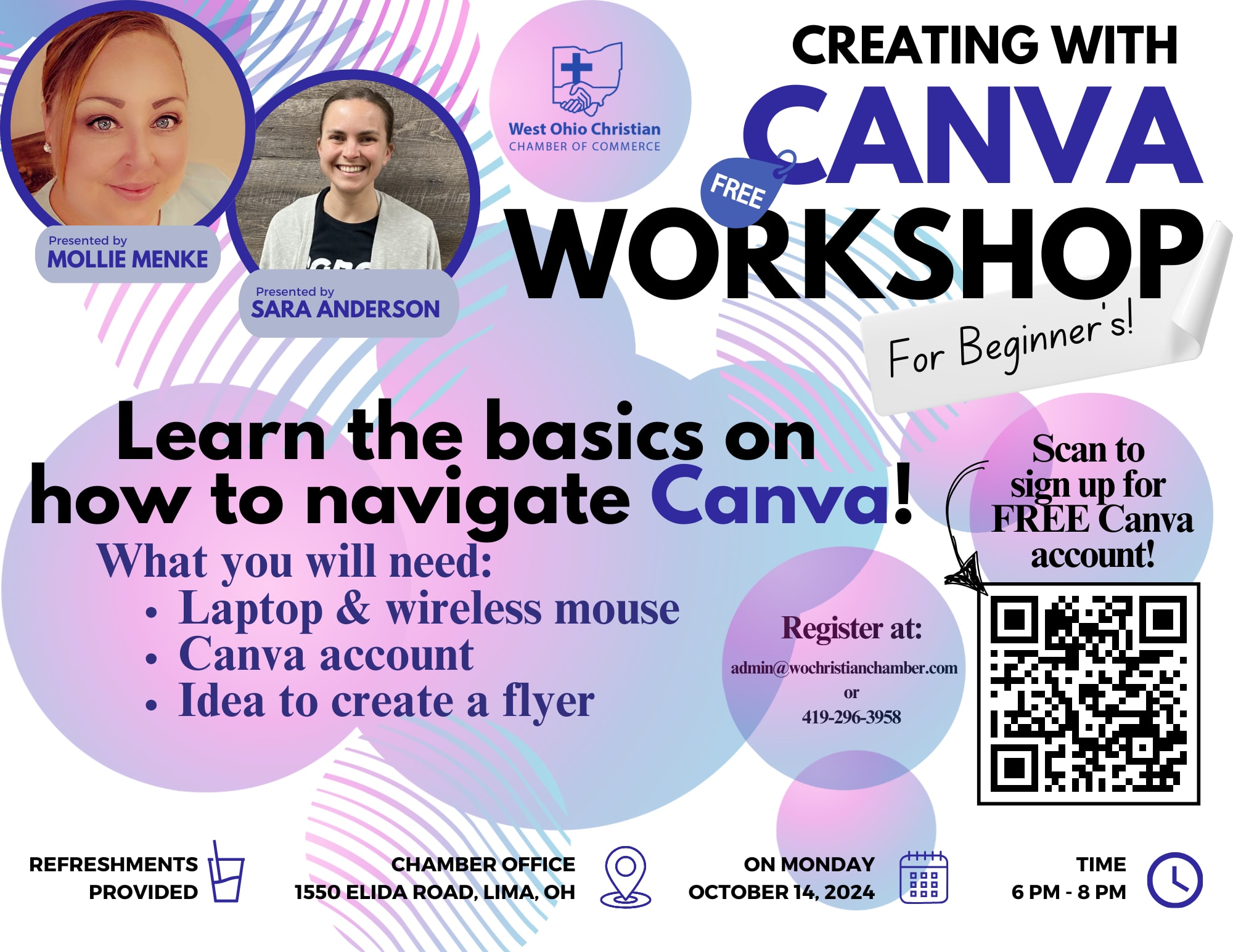 Learn More and Register: https://wochristianchamber.com/event/free-creating-with-canva-workshop-for-beginners/