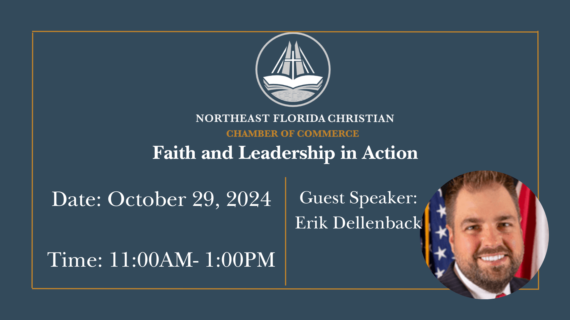 Join the Northeast Florida Christian Chamber of Commerce on October 29 at RiverTown Church for an empowering event featuring Erik Dellenback, Governor’s Liaison for Faith and Community to Florida Governor Ron DeSantis.