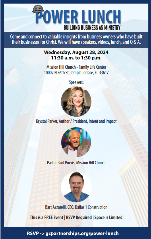 Come and connect to valuable insights from business owners who have built their businesses for Christ. We will have multiple speakers, videos, lunch, and a time for Q & A.