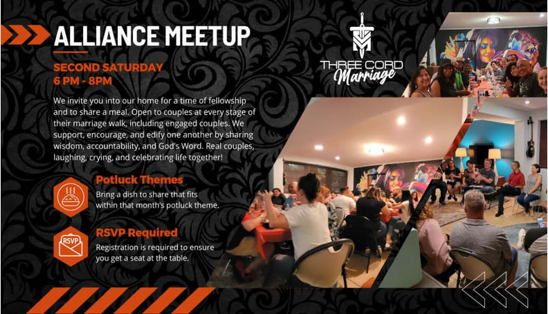 Mark your calendar for the second Saturday of every month and step into a powerful community designed to help you thrive in your marriage. Whether you're engaged, newly married, or have been together for decades, the TCM Alliance Meetup is where couples unite to strengthen their bond, deepen their faith, and grow through life’s challenges—together.